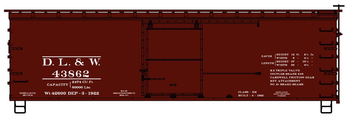 DL&W Lackawanna 36 Foot Wood Boxcar with Metal Ends