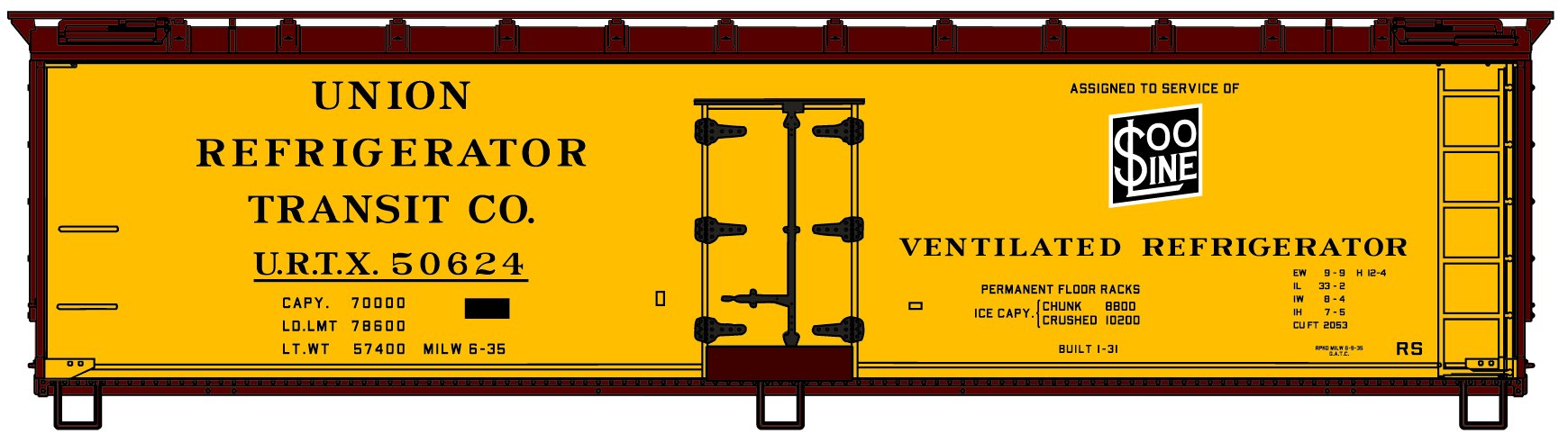 40' Wood Refrigerator Car - Equipped with Andrews Trucks