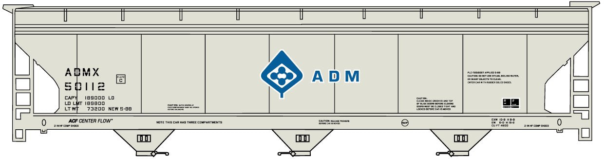 2000 Undecorated 3-Bay ACF Covered Hopper (Light Gray)