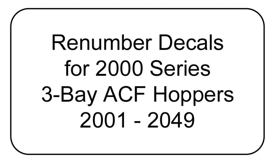 Decal Renumber Sets for 2000 Series 3-Bay ACF Hoppers 2001-2049