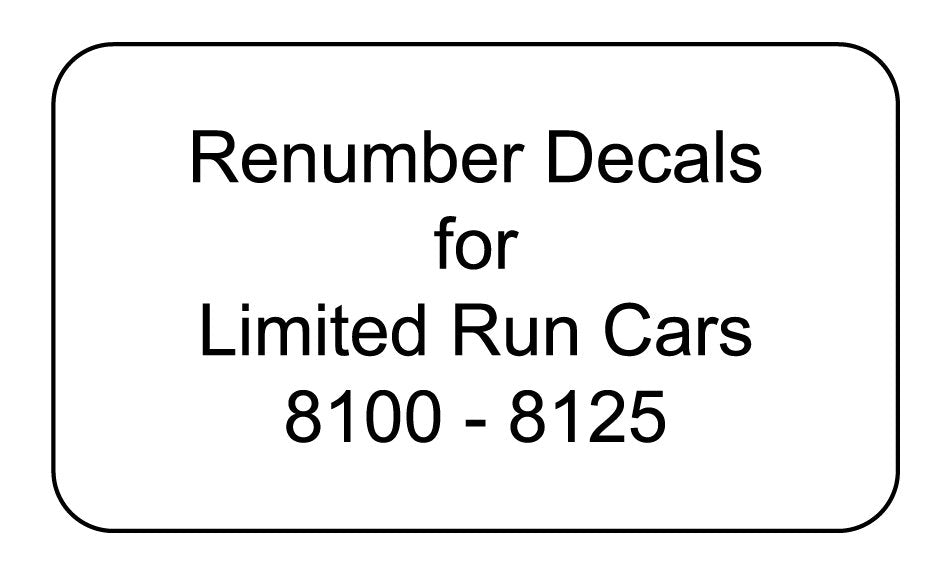 Decal Renumber Sets for Limited Run 8100 through 8125